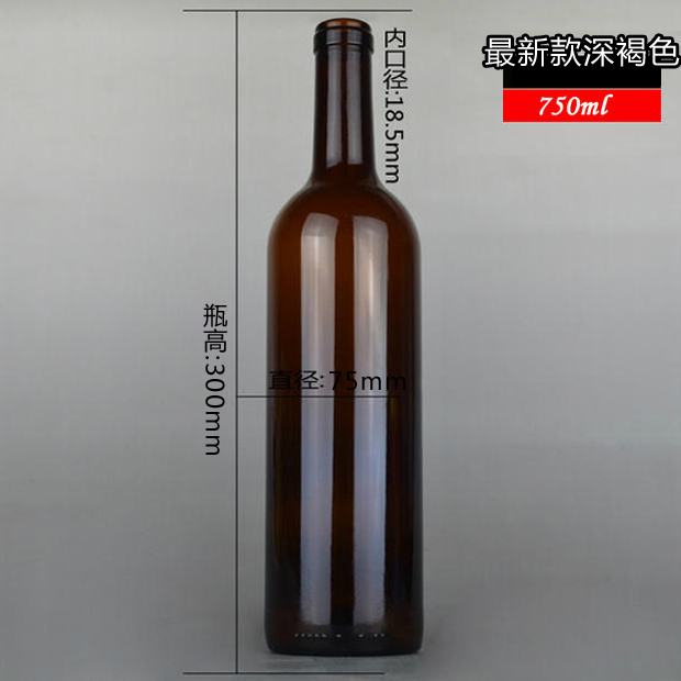 750ml 新款深褐色紅酒瓶葡萄酒玻璃瓶