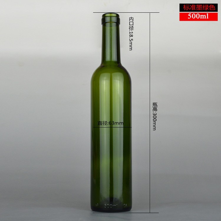 500ml 標(biāo)準(zhǔn)墨綠色紅酒瓶原色玻璃瓶