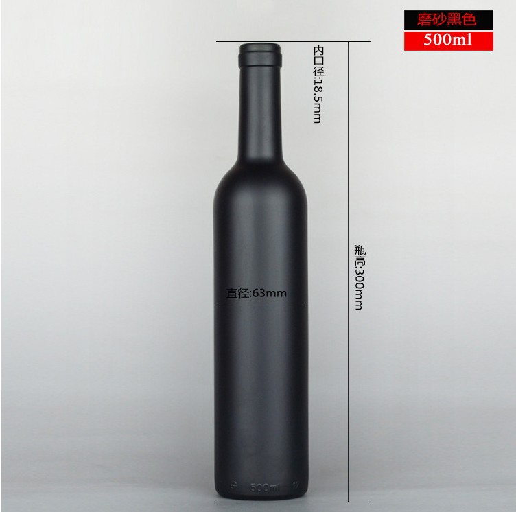 500ml 磨砂黑紅酒瓶葡萄酒玻璃瓶